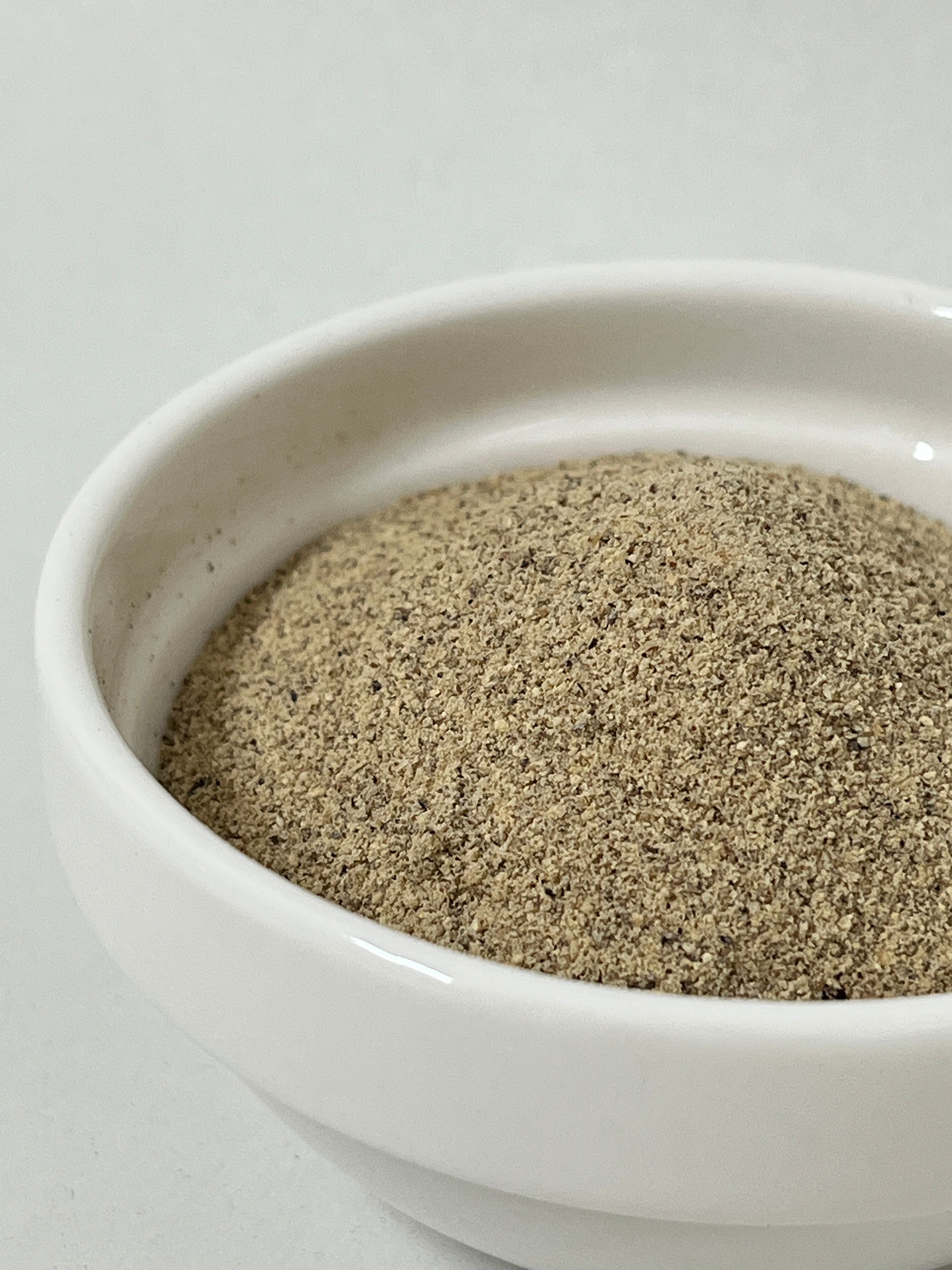 ブラックペッパーを更に完熟させて果皮を剥いたものが、ホワイトペッパーです。辛味・風味共にブラックペッパーより穏やかで、素材の味を変えずに辛みを付けることができます。クリーム系と非常に相性が良く、臭みを抑え味を引き立たせます。ブラックペッパーと同様に様々な作用があり、保存や薬用として用いられています。