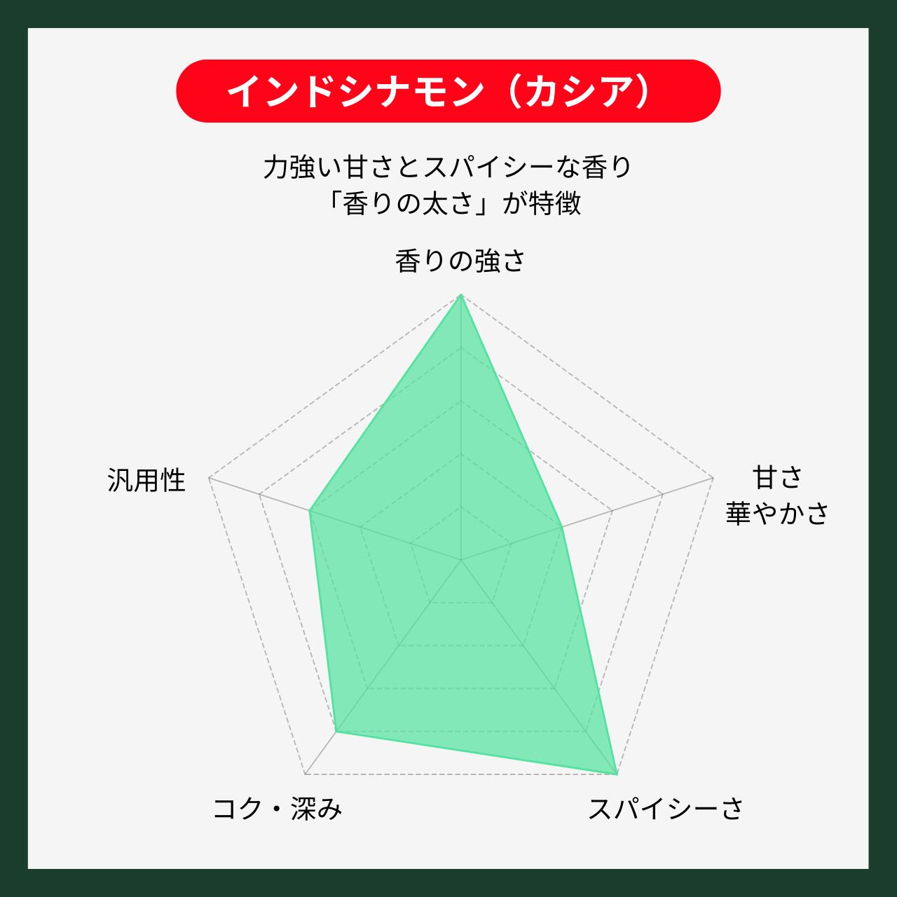 カシアは甘みの奥にしっかりとした辛味があり、香りの存在感が際立ちます。