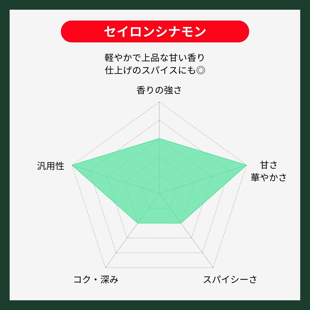 同じシナモンでも、力強く甘辛いカシアとは香りの方向性が異なり、