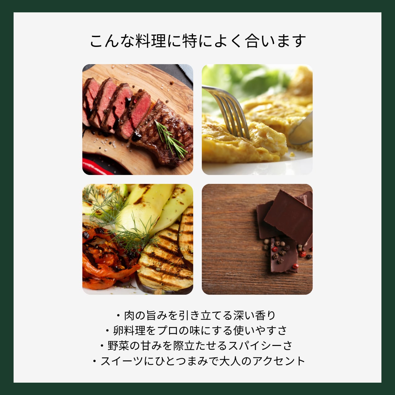 日常の料理をワンランク引き上げる“本物の香り”を楽しめます。